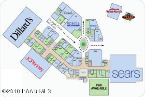 Description: The property owners are willing to Sale or Lease this dirt out lot. The Pad is flat and ready to build on. Curbs, Gutters, and Sidewalks already in. Get creative and submit an offer to purchase or lease this lot at the Mall. Its located in a high traffic area next to the Food Court. The property will be split from its current parcel during escrow.