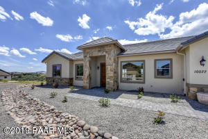 Description: Stunning new construction with all the upgrades imaginable! The home features 2397 square feet, 8 ft doors , and 10 ft ceilings. There is a floor to ceiling stone fireplace in the great room which features great spaces for built-ins as well as wonderful views of the Bradshaw Mountains. The great room is open to the dining area, and kitchen. The kitchen offers outstanding features including leathered granite countertops, a large island, a 36''- 6 burner dual fuel range, a built in microwave, and a large built-in pantry. There is a large eat-in space in the kitchen also. The home features 3 large bedrooms and an office. The master suite features a large walk in closet, walk-in shower and a large jetted tub. There is a covered deck with tongue and groove ceiling that offers spectacula